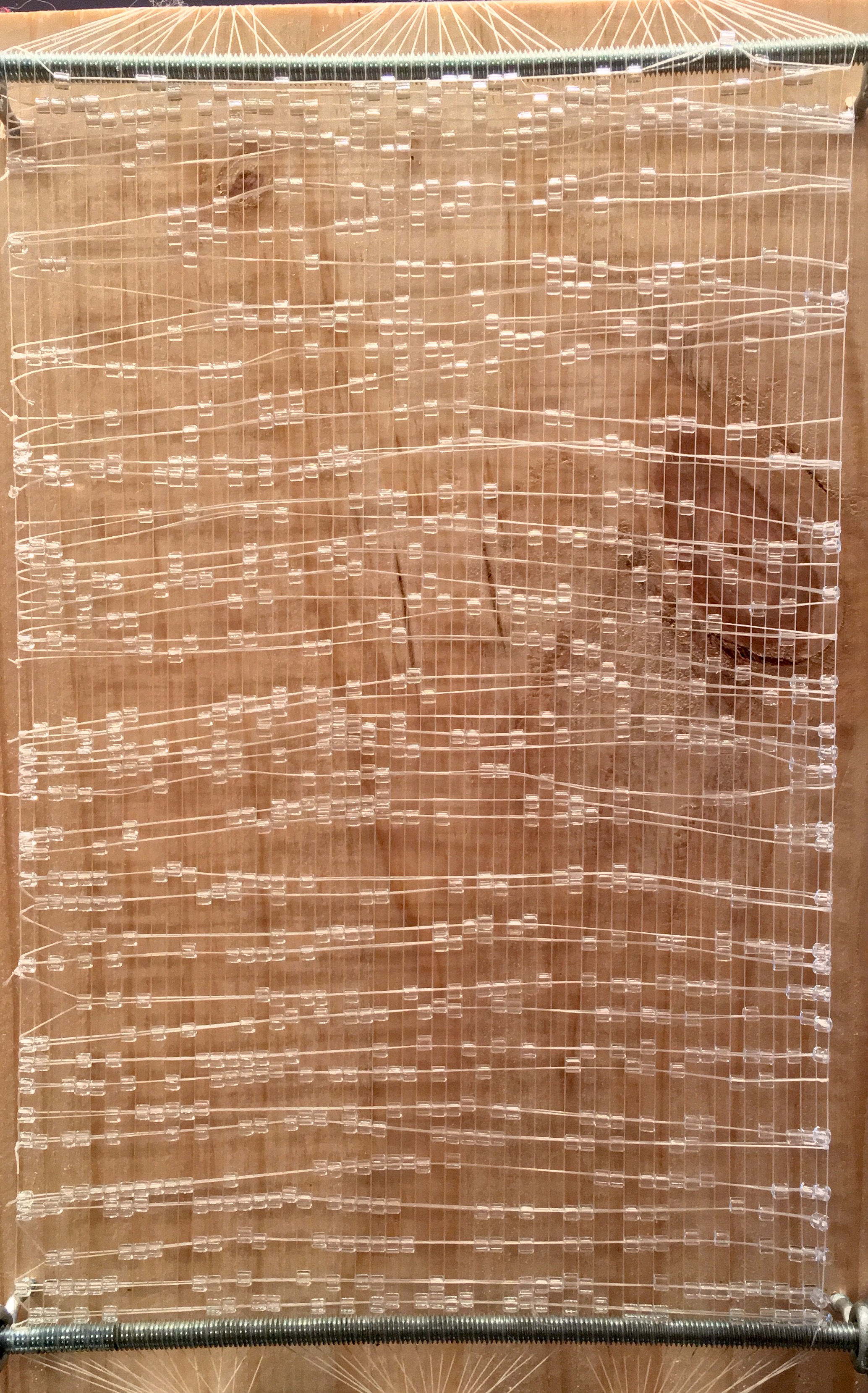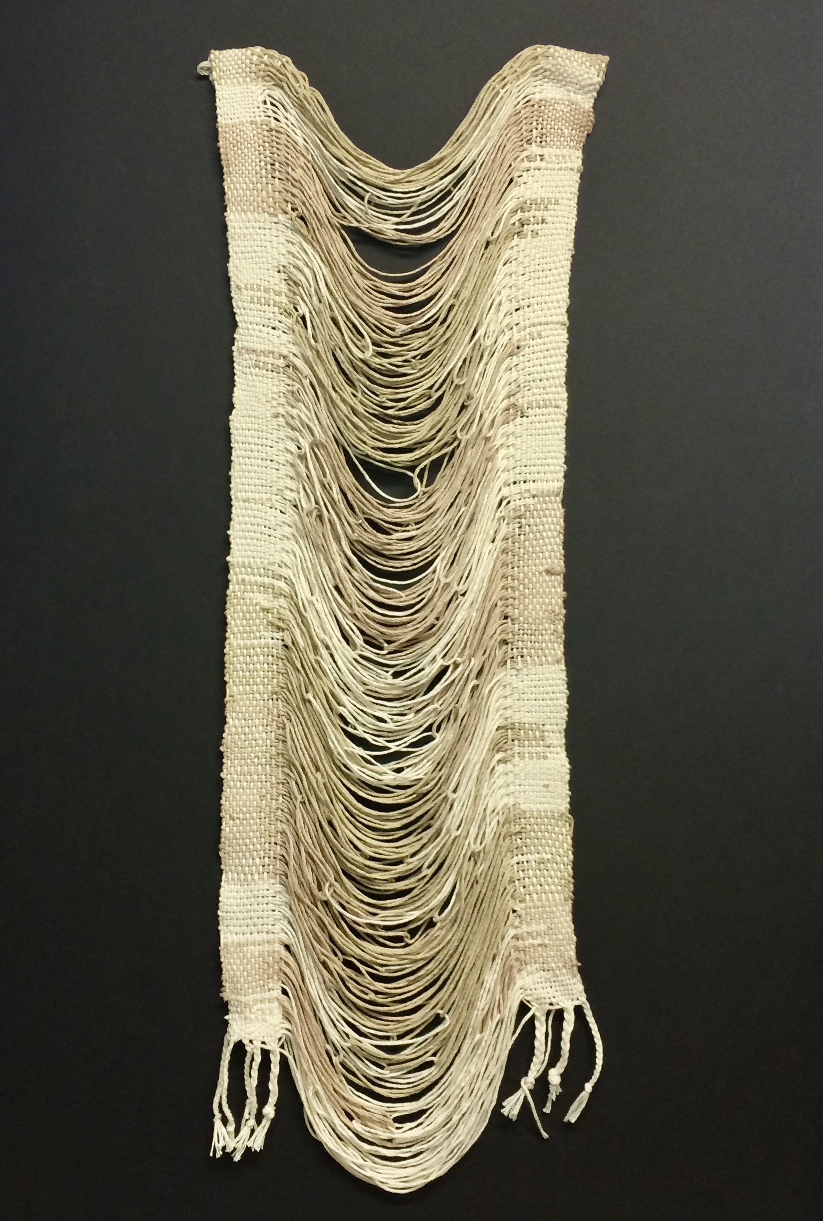 Punto medio, tejido en algodón nativo peruano.La obra explora la tensión y la distensión